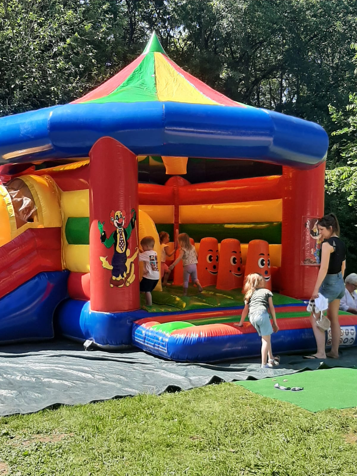 Die Hüpfburg auf der kleinen Wiese war hingegen nur für die Kinder gedacht. Das sehr warme Wetter hatte zur Folge daß die Kinder nach einigen Minuten auf der Hüpfburg dringend eine Abkühlung brauchten. Schön das auf die Kinder kühle Getränke oder sogar gefrohrenes Eis warteten, das half sofort. Die Erwachsenen konnten hingegen mit Softgetränken, Bier und Kaffee ihren Durst stillen.