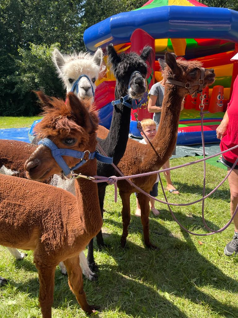 Auf der großen Wiese gab es einen Streichelzoo. Ziegen und Altpaka`s warteten hier um bestaunt und gestreichelt zu werden. Das Altpaka kommt ursprünglich aus den südamerikanischen Anden, aus der Familie der Kamele. Wenn man Glück hat dann durfte man auch ein Altpaka an der Leine auf der Wiese bewegen.